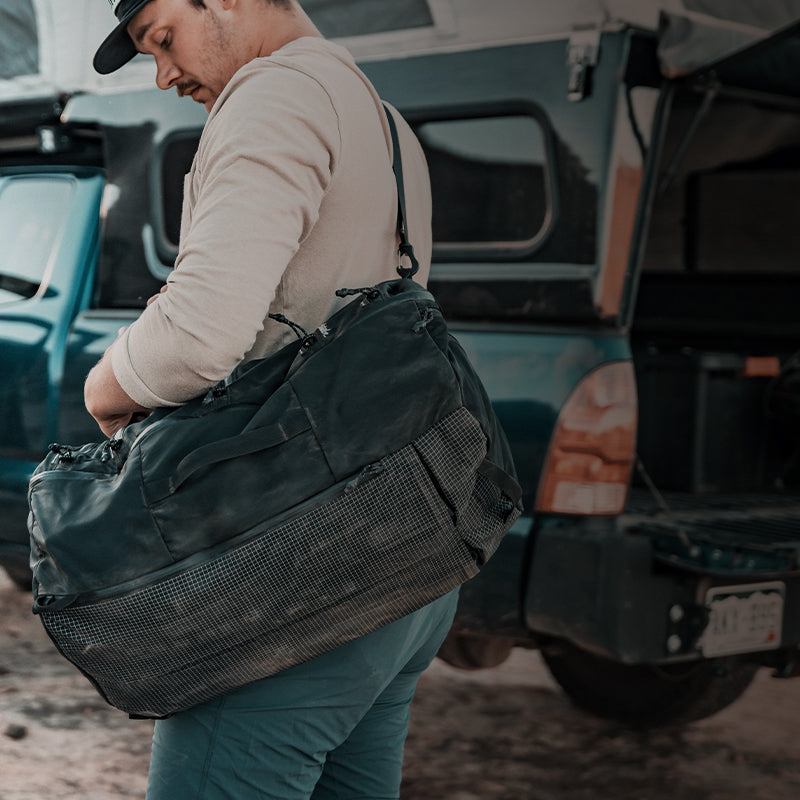Packable backpacks, duffle bags, and slings that offer weatherproof performance and stow away to go with you.